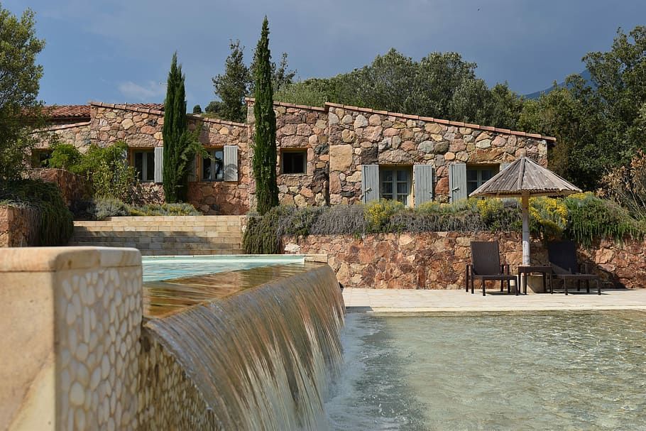 Una piscina con cascada transforma cualquier espacio en un auténtico santuario. El sonido relajante del agua en movimiento y su diseño elegante crean una atmósfera de calma y lujo en tu hogar